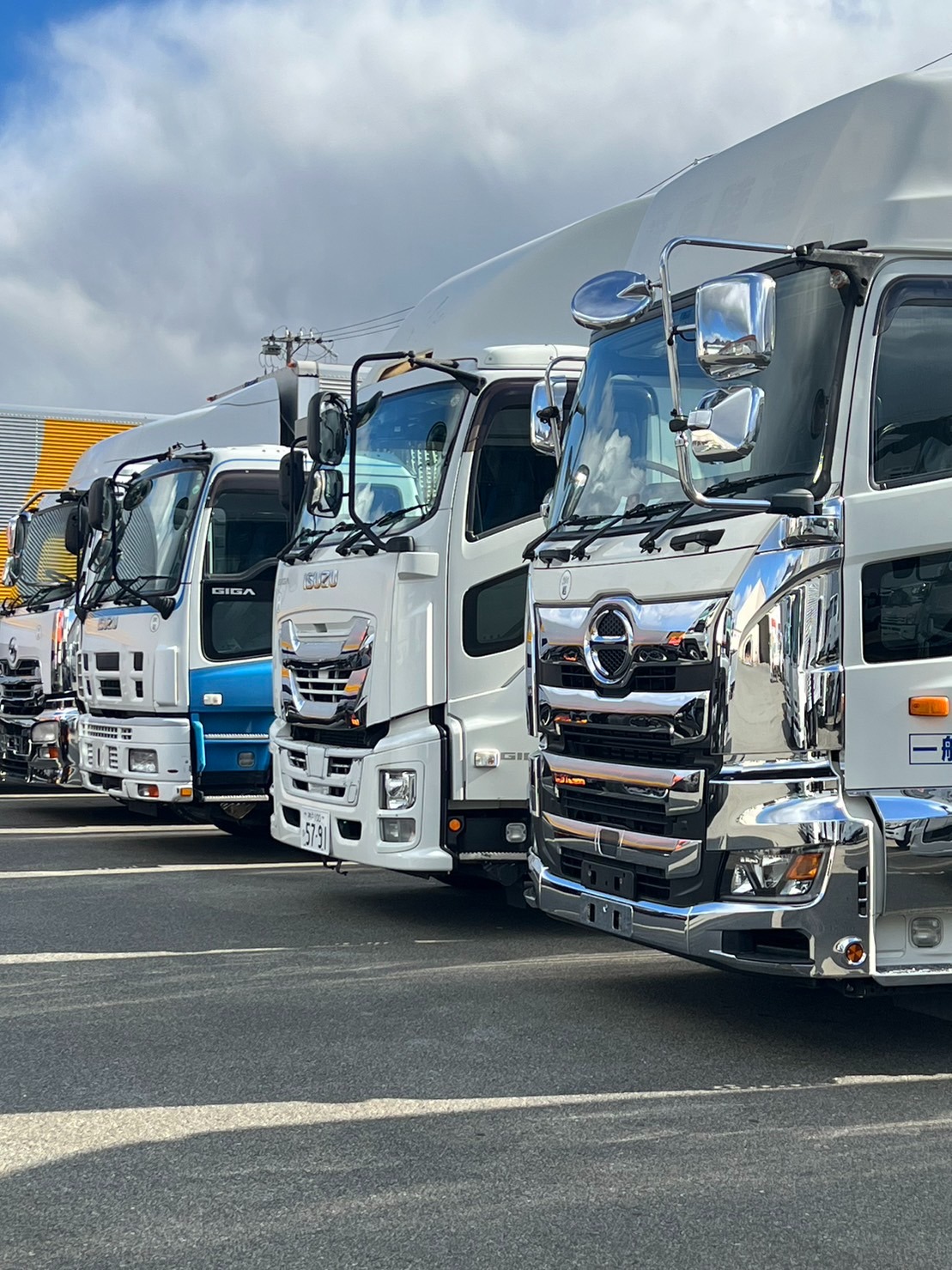 大型トラックをメインに、大型バス・トレーラー・大型特殊車輌等、一貫輸送を行っています。